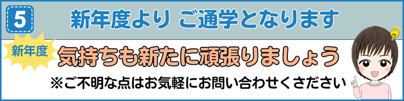 3月末に初回レッスンのお知らせが届きましたら、新年度(2026年4月)よりご通学となります。
